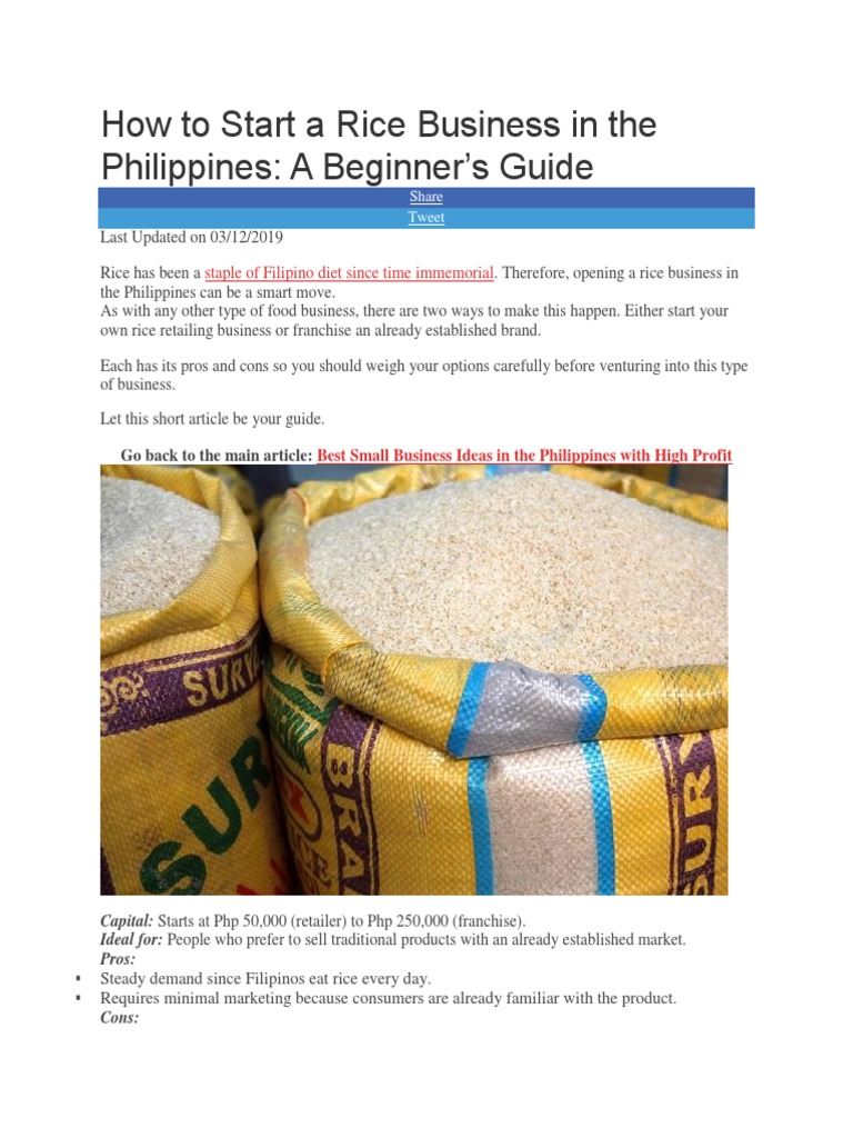 Doc Starting A Rice Dealership Business In Rice Retailing Bigasan In The Philippines Altea Gasmen Academia Edu